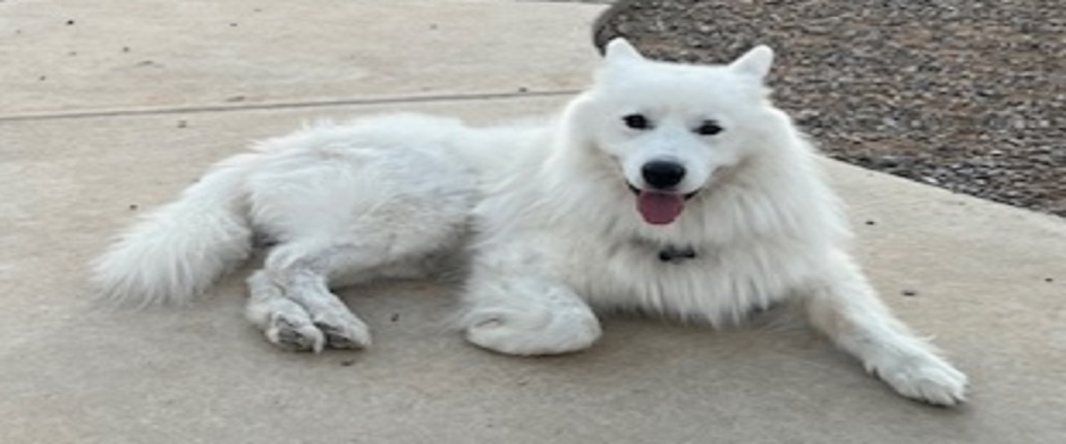 Simba is a 7 year old male Samoyed who came to us in August 2021 from Canton, Georgia. Like many of the dogs that come into our care, we don’t know anything about his prior owner or what his life was like. He was found on the street and placed in Cherokee County Animal Shelter. Sadly, his owner never responded to repeated calls to retrieve him. Luckily, a volunteer committed to finding Simba a forever home took photos of Simba and called several rescues finally reaching St. Louis Samoyed Rescue. Our rescue immediately said yes to taking him in and transportation was arranged from Canton, Ga to Nashville, TN where the McNamee family picked him up and brought him to their home in St. Louis.