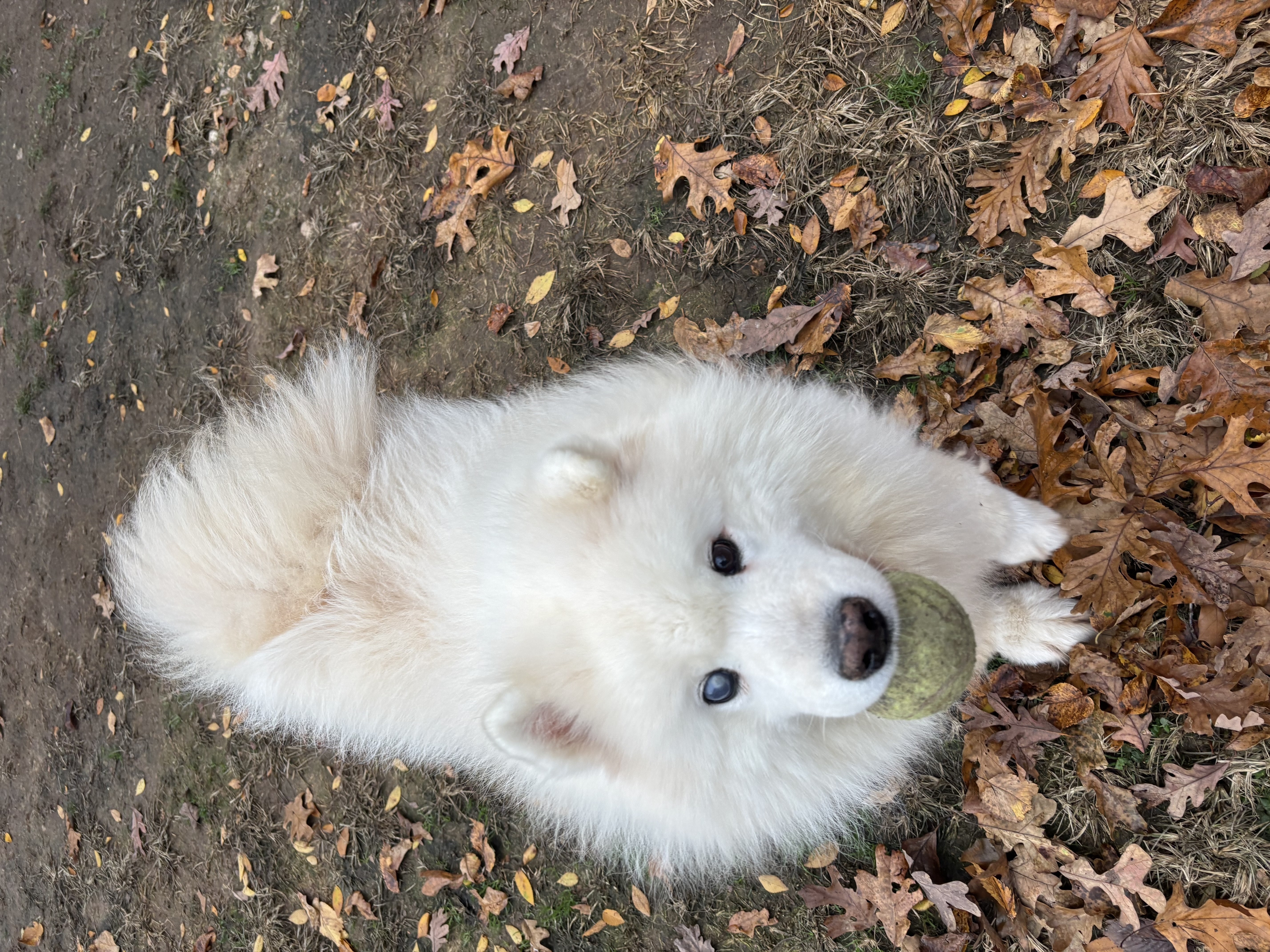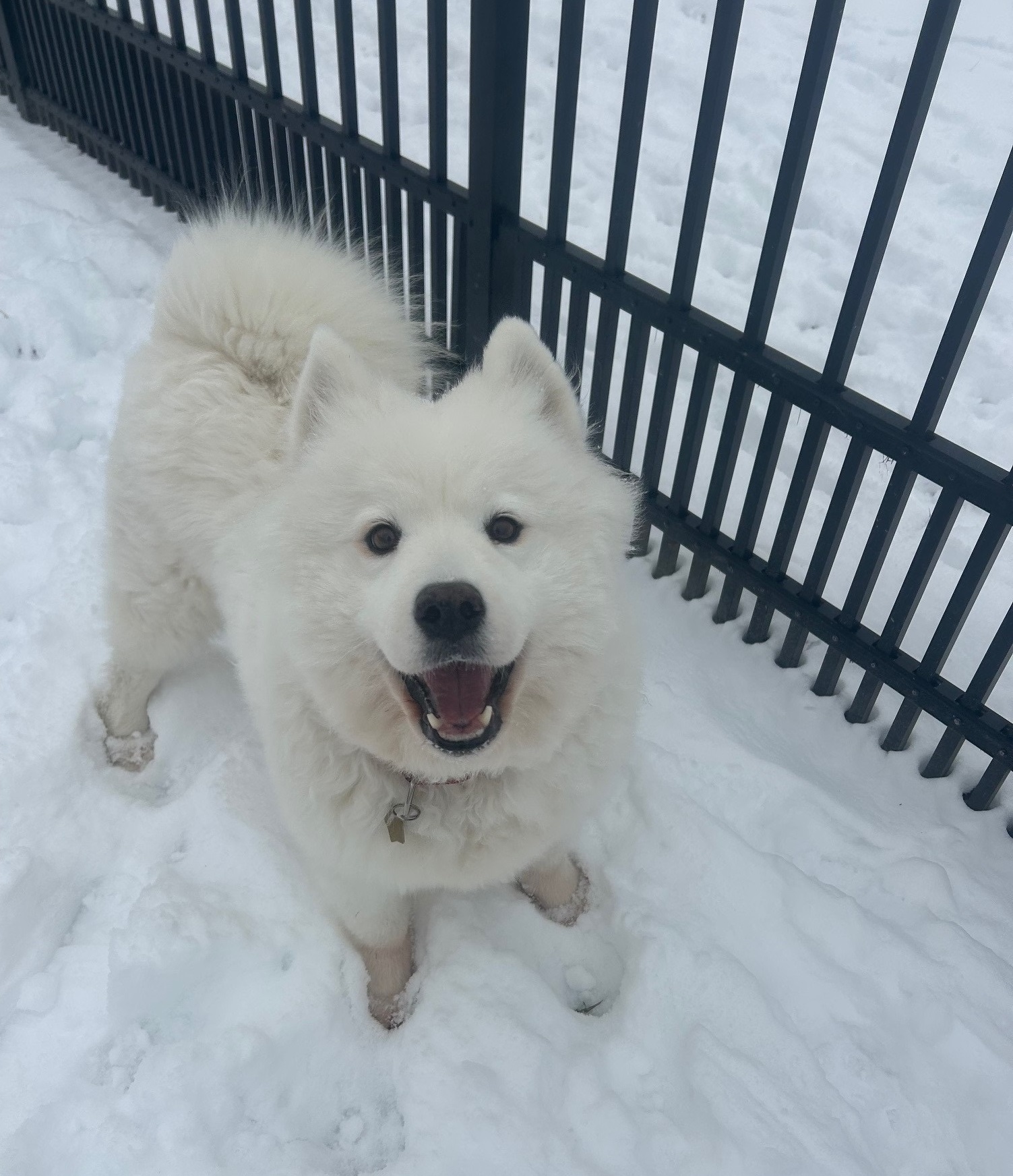 Simba is a 7 year old male Samoyed who came to us in August 2021 from Canton, Georgia. Like many of the dogs that come into our care, we don’t know anything about his prior owner or what his life was like. He was found on the street and placed in Cherokee County Animal Shelter. Sadly, his owner never responded to repeated calls to retrieve him. Luckily, a volunteer committed to finding Simba a forever home took photos of Simba and called several rescues finally reaching St. Louis Samoyed Rescue. Our rescue immediately said yes to taking him in and transportation was arranged from Canton, Ga to Nashville, TN where the McNamee family picked him up and brought him to their home in St. Louis.